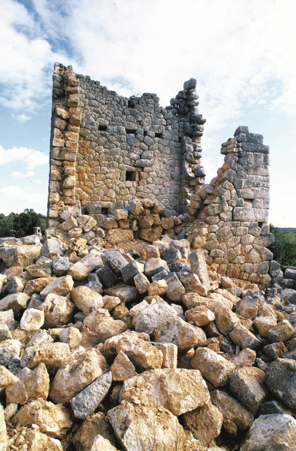 Today's village settlement is situated on the north and south slopes. The archaeological site consists of two large slopes and a hollow area. The columns of a peristyle-style house on the northern slope remain intact. Above it stands a two-story house from the Early Byzantine period, which has a cross in the center of its wide doorway lintel, flanked by peacock motifs. Further ahead, a tower, heavily damaged and dating back to the Hellenistic period, was built by priests from Olba. The tower's southern wall features a phallic symbol. The southern slope of the settlement was used for constructing churches, with three churches built consecutively. Due to the absence of inscriptions, the churches remain unnamed and have been numbered. The first church (No. 1), located to the west, retains parts of its narthex and apse. The eastern church (No. 3) is entirely demolished. Compared to these, the central church (No. 2) is relatively better preserved. All three churches follow a basilica plan with three naves, ending in a semi-circular apse to the east. The bema, housing the apse, includes symmetrically arranged side chambers to the north and south. The churches were constructed from neatly cut small stones and are dated to the early 5th and 6th centuries. Between the two slopes, directly below the central church, lies a large hollow area. Although considered a sacred space from the Roman (Hellenistic) period, the presence of large surrounding columns and bases suggests it may have served as a cistern. In this hollow section, the door frames of the houses remain intact. On the southern slope, there are two small Roman necropolises. The valley surrounding the western and northern sides of the site also contains architectural remains and rock tombs. Source: Mersin Provincial Directorate of Culture and Tourism Archives