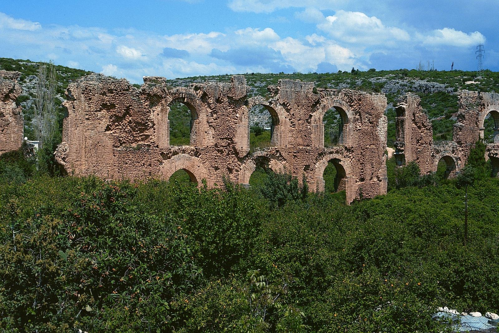 This water transport system includes galleries carved into the bedrock, open channels constructed by carving the bedrock or using mortared wall techniques, and aqueducts. The gallery-type channels, starting from the Lamas Valley, are adjusted along the topographic slope in a way that does not increase the water flow rate. To keep the water level constant, the channel must maintain a consistent slope throughout its course. In these galleries located on the slopes, window-like openings were made at intervals to allow for external interventions in cases of faults or maintenance since the steep valley slope makes such interventions impossible. These openings also served to remove the waste generated during the tunnel excavations and to prevent moss growth due to lack of air and humidity. Following these gallery-type channels, the system continues with aqueducts. The connections between aqueducts were made using channels carved into the bedrock or constructed using the mortared wall technique. Aqueducts were built as single or two-story structures depending on the width of the stream bed and the height of the slopes. The span of the arches also varies accordingly. The channels, which are also plastered inside, are about 1.10 meters high and 1.70 meters wide. The channels were covered with slab stones or a mortared cover. During the Hellenistic Period, the water channels were covered to keep the water clean and, where possible, passed underground. This kept the water clean, but the disadvantage was that faults in the system could not be repaired. The Romans preferred open waterways, but this system also faced contamination issues. Due to the lime layers formed from irregular cleaning and maintenance of the waterways or channels, along with accumulated sand or other waste, which reduced the water flow rate and volume, maintenance teams and supervising control teams were established during the Roman Period. One of the most commonly used methods during the Roman Period was underground tunnels. Tunnels, which were high enough for a person to pass through comfortably, had vertical shafts opening to the surface. Once the tunnel was completed, the air shafts provided easy access for inspection or maintenance of any part of the tunnel. An additional reason for transporting water underground was to protect the waterway from enemy attacks. The distribution of water, brought to the city and transported to pools and fountains, was done using terracotta or lead pipe systems. This system, along with other systems, was also used in Olba and Diocaesarea and dates to the late 2nd century AD. The aqueducts, first constructed during the Roman Period, initially brought water to Elaiussa Sebaste (Ayaş), as Korykos was dependent on Elaiussa Sebaste at that time. After the 4th century, when Seleucia became the center of the Isauria Province, Korykos gained importance due to its port. Elaiussa Sebaste lost its significance after its port became filled with sand dunes. Therefore, in the 5th and 6th centuries, these aqueducts were repaired to supply water to Korykos. It has been determined that the system supplying water to Elaiussa Sebaste was likely built in the 1st and 2nd centuries AD during the Roman Period, underwent multiple repairs, and was later extended to supply water to Korykos (Kız Kalesi). This extension, carried out in the 5th and 6th centuries, is evidenced by the inscription on the second aqueduct mentioning Byzantine Commander Ilios, indicating the repairs during his time. Today, water taken from the Lamas River is occasionally used in parallel lines by farmers for agricultural production through iron pipes. Source: Mersin Provincial Directorate of Culture and Tourism archives.