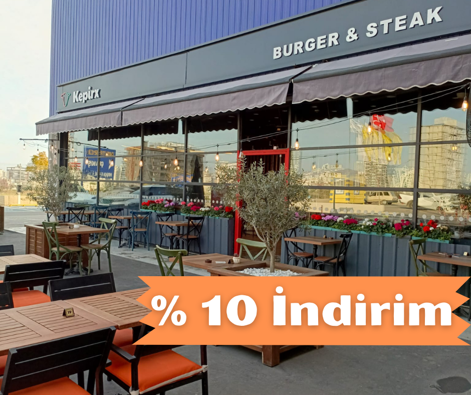 Kepirx Burger & Steak предлагает своим гостям правильно выдержанное и обработанное мясо, приготовленное в оптимальных условиях. В ресторане подают такие фирменные блюда, как рубленый вручную Адана-кебаб, бараньи отбивные, трабзонские акчаабатские котлеты, сусурлукские шашлычки и домашние бургеры, приготовленные на дубовом угле, а также разнообразные мезе и закуски. Kepirx принимает гостей каждый день с 10:00 до 22:00 внутри Metro Market.
