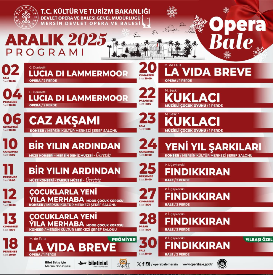 Mersin Devlet Opera ve Balesi Aralık Programı