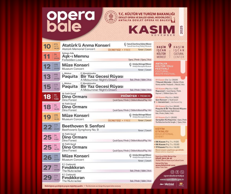 - Antalya Devlet Opera ve Balesi Ekim Programı - Antalya State Opera and Ballet – October Program - Государственный театр оперы и балета Антальи – Программа на октябрь |