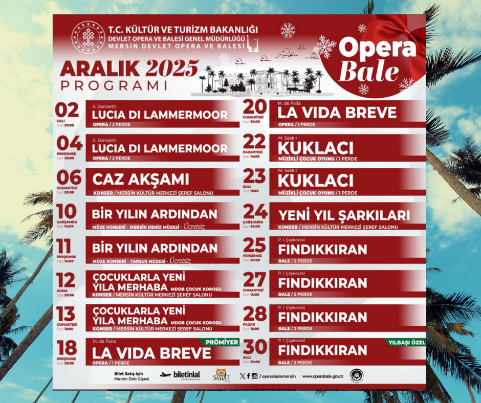 - Mersin Devlet Opera ve Balesi Aralık Programı - Mersin State Opera and Ballet – December Program - Государственный театр оперы и балета Мерсина – Декабрьская программа |