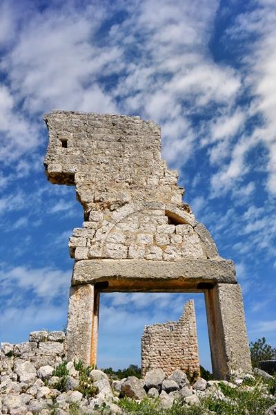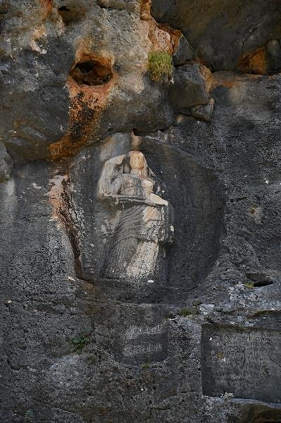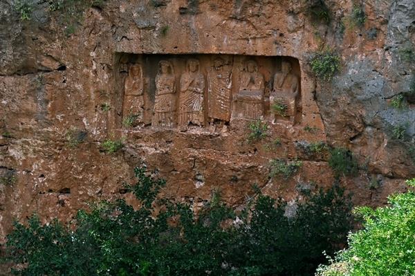 Kanlıdivane Archaeological Site Address: Kumkuyu-Merkez Neighborhood, Erdemli / MERSİN Site Visiting Hours (Summer/Winter): Summer: 10:00-19:00 Winter: 09:00-17:00 Known in ancient times as "Kanytella" or "Canytellis," the Kanlıdivane archaeological site is located 50 km west of Mersin, 3 km north of the Mersin-Silifke highway, at a key location for maritime trade. The settlement is built around a large depression, known as an obruk, which is 60 meters deep and measures approximately 170 by 200 meters. The site, continuously inhabited, includes a sacred Hellenistic area, a tower, tombs dating to the 2nd-3rd century AD, temple tombs, a large necropolis with a three-columned prostylos tomb, residential structures dating from the Late Hellenistic to the Early Byzantine periods, and four churches. A Hellenistic-period tower (2nd century BC), built of polygonal blocks, stands on the southern edge of the depression. Inscriptions indicate it was dedicated to Zeus Olbios by Priest Prince Tuekros, son of Tarkyaris. The tower's rectangular foundation plan includes three rooms, with later additions during the imperial period showing its continuous use until the Early Byzantine period. On the southwestern corner of the smoothed blocks, two inscriptions related to the Olba Priests are found. Approximately 60 to 80 houses, arranged irregularly around the depression, mostly in ruins, date as far back as the Late Hellenistic period. Some were repaired multiple times and used through the Late Empire and Early Byzantine periods. Of the four churches built around the depression, the best-preserved ruins indicate that Kanlıdivane was a significant settlement in the Late Antiquity. Numerous houses and olive oil workshops from this period suggest it was an important production center, using Akkale Port for olive oil export. In the necropolis area extending north of the depression, there are numerous sarcophagi, monument tombs, and graves of Türkmen tribes on the cliff’s edge. Inside the depression, a relief of the Armaronxas family from the 1st century AD depicts them seated on the southern wall. The 4x2 meter relief is slightly crude in craftsmanship and bears an inscription stating, "Hermias erected statues of his father Armaronxzas, wife, and children. Anyone who harms the statues will pay Zeus a fine of 1,000 drachmas," naming the family members, including three daughters and one son. The oldest tomb examples are the "Çanakçı Rock" tombs, a few kilometers southwest of the depression. Here, nine rock-carved tombs and several sarcophagi feature reliefs of warriors holding spears and swords, as well as veiled women figures. Among these is a depiction of a mourning woman holding her veil over her head. On the northwest surface is the relief of a soldier named Trogomon. One tomb bears an inscription stating that grave robbers would face penalties payable to the temples of Zeus, Helios, and Athena. In the upper section of the necropolis, the temple tomb built in honor of Aba, a notable of the city, dates to the 2nd century AD and is significant due to the mention of the city's ancient name, "Canytellis." Origin of the Name Kanlıdivane The name Kanlıdivane may originate from the word "Divan," referring to places where scattered Türkmen tribes gathered to make decisions, or from "Kanytelleis." It could also be due to the red color of the rocks and ruins, which gives a bloody appearance. Local lore suggests the name comes from the ancient practice of abandoning criminals in the depression to be torn apart by lions, causing the rocks to be bloodstained.