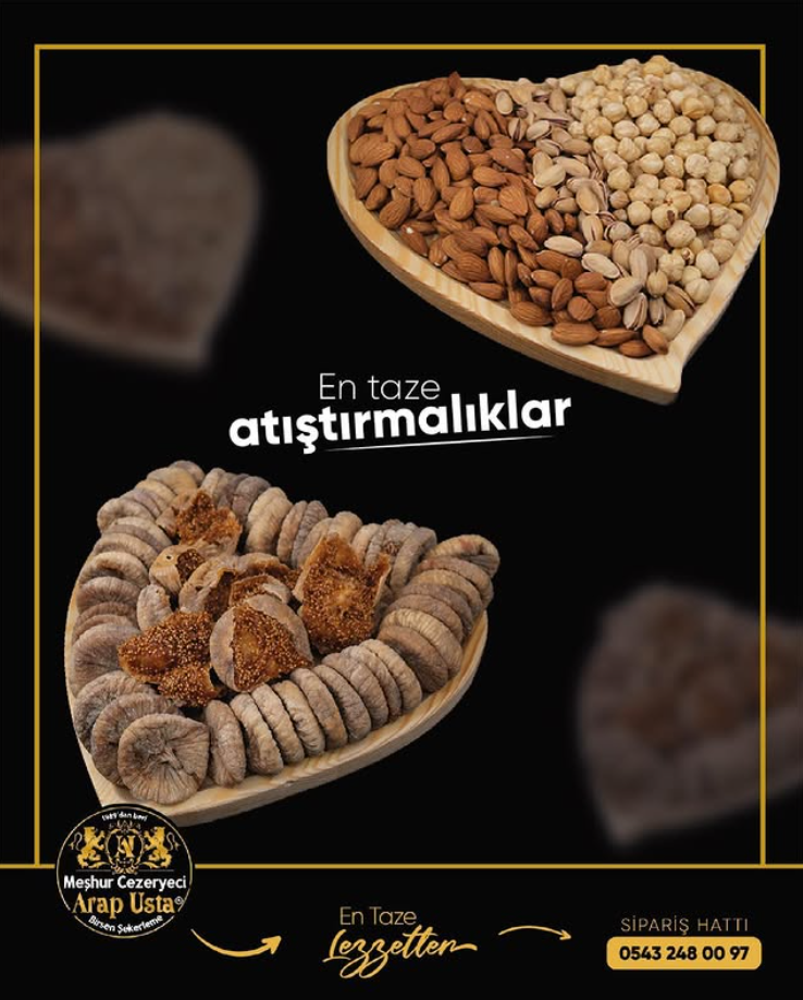 🏛️34 Yıllık Tecrübe 📍Cezerye Çeşitleri 📍Kuruyemiş 📍Türk Kahvesi 📍Tahin 📍Çikolata Çeşitleri 📍Kuru Meyve 📍Arap Usta Sucukları