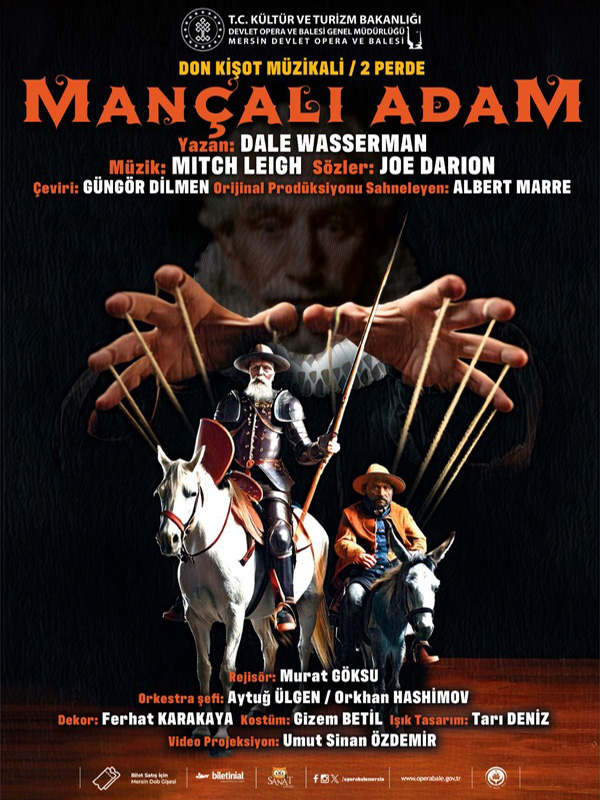 Mançalı Adam I. Perde 16'ncı yüzyılın sonları. Başarısız yazar-asker-aktör ve vergi tahsildarı Miguel de Cervantes, İspanyol Engizisyonu tarafından uşağı ile birlikte zindana atılmıştır. Vergisini ödeyemeyen bir manastıra karşı çıkmakla suçlanmaktadırlar. Burada mahkumlar sahte bir duruşma tertipler. Cervantes buna razı olur, ancak mahkumların alelacele yakmak istediği o çok değerli el yazması metinlerini vermek istemez. Buna karşılık bir savunma önerisinde bulunur: Bu savunma, kendisinin ve tüm mahkumların rol alacağı bir oyun olacaktır. Cervantes, kısa bir süre içinde şövalyelikle ilgili çok fazla kitap okumuş, adaletsizlik üzerine aşırı düşünmekten çıldırmış ve gezgin bir şövalye olarak hayatını sürdürmeye karar vermiş yaşlı bir beyefendi olan Alonso Quijana’nın hikayesini anlatmaya başlar. Quijana kendisine Mançalı Don Kişot ismini takar ve uşağı Sancho Panza ile birlikte maceralara atılmak üzere yola çıkar. Don Kişot, kendisinin en ölümcül düşmanı olan “Büyücü” lakaplı sihirbaz tarafından her an saldırıya uğrama tehlikesi altında olduklarını belirterek Sancho Panza’yı uyarır. Birlikte hana gelirler ve burada Don Kişot’un gözü Aldonza’ya ilişir; onun ömür boyu bağlılık yemini ettiği Dulcinea olduğuna inanır. Aldonza ise Don Kişot'un kendisine tuhaf ve rahatsız edici bir kibarlıkla yaklaşmasından hoşlanmaz. Don Kişot birden kafasının tıraşlı kısmını güneşten korumak amacıyla başına çanak geçiren berberi gösterir. Ardından kılıcını ona doğru yönelterek berberin başından çanağı alır. Çünkü çanağı, Mambrino’nun mucizevi Altın Tolga’sı olarak görmektedir ve ona sahip olmak kendisini yenilmez yapacaktır. Rahip ve Dr. Carrasco ona gerçeği anlatmaya çalışsa da ikna etmeyi başaramaz. Daha sonra Pedro, kendisini çok beklettiği gerekçesiyle Aldonza'ya tokat atmak ister. Don Kişot, Pedro’yu engeller ve tüm katırcılara meydan okur. Don Kişot’un dövüş becerisi hiç yoktur, ancak biraz şans, biraz kararlılık ve biraz da Aldonza ile Sancho’nun yardımlarıyla katırcıları yenilgiye uğratır. II. Perde Kavganın gürültüsü Hancı'yı uyandırır. Hancı, kibarca Don Kişot’tan orayı terk etmesini ister. Don Kişot verdiği rahatsızlıktan dolayı hancıdan özür diler ve Hancı'nın kendisini şövalye yapacağına dair verdiği sözü ona hatırlatır. Hancı sözünü tutar. Don Kişot katırcıların yaralarının sarılmasını ister. Don Kişot'un hala 'Dulcinea' diye hitap ettiği Aldonza buna çok şaşırır. Don Kişot ona, şövalyelik kurallarına göre yenilgiye uğramış bir düşmana yardım edilmesi gerektiğini anlatır. Bunun üzerine Aldonza bu görevi üstlenir. Don Kişot ile Sancho handan ayrılır ve yolda Mağribî adı verilen bir çingene çetesiyle karşılaşır. Çingeneler, Don Kişot’un saflığından faydalanıp ikilinin her şeyini çalarlar. İkili mecburen hana geri döner. Hancı ilk başta onları içeri almak istemese de, sonunda onlara acıyarak içeri alır. Aniden bir başka şövalye ortaya çıkar; Don Kişot’un ölümcül düşmanı “Büyücü”dür gelen. Bu sefer “Aynalar Şövalyesi” kılığındadır. Aldonza’ya hakaretler yağdırır. Bunu üzerine Don Kişot ona meydan okur. Aynalar Şövalyesi ve onun maiyetindekiler, üstünde aynalar bulunan büyük kalkanlar taşımaktadır ve onları Don Kişot’a doğru tuttuklarında güneşin göz kamaştırıcı ışığı onun gözünü alır. Aynalar Şövalyesi, Don Kişot'u kendisini dünyanın onu gördüğü şekliyle görmeye zorlar: Yani çılgın bir budala olarak. Don Kişot yere yığılır. Aynalar Şövalyesi miğferini çıkarır ve gerçek kimliğini gösterir. O aslında Dr. Carrasco’dur. Alonso Quijana, yatak odasında komaya girmiş bir halde yatmaktadır. Antonia, Sancho, kahya kadın, rahip ve Carrasco yanı başındadır. Quijana, ölmek üzere olduğunun bilincindedir ve rahipten vasiyetinin yazılması için yardım ister. Quijana, vasiyetini yazdırmaya başladığı sırada, Aldonza içeri girer. Alonso Quijana onun kim olduğunu hatırlayamaz. Bunun üzerine Aldonza ona Dulcinea'nın şarkısını mırıldanır. Quijana, birden her şeyi hatırlar ve yatağından kalkar. Hemen zırhını ve kılıcını ister, yeniden yola koyulacaktır. Ancak artık çok geçtir; şarkının ortasında inleyerek yere yıkılır ve ölür. Sancho, Aldonza'ya ismiyle hitap edince, Aldonza bundan sonra kendisine Dulcinea denilmesini ister. Engizisyon, Cervantes’i duruşmaya götürmek için gelir. Cervantes’in metninden oldukça etkilenen mahkumlar onu suçsuz bulurlar ve el yazması metnini geri verirler. Etkinlik Türü Müzikal