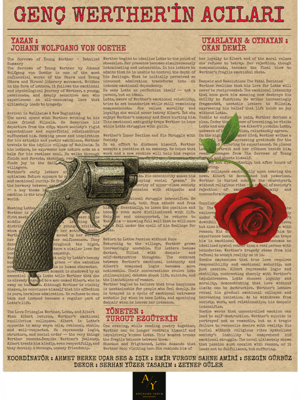 The Sorrows of Young Werther - Theater Play Age Limit: 13+ Does love keep a person alive, or does it consume them? Are you ready to feel the impossible love Werther holds for Lotte and the storm deep within his soul? Goethe's masterpiece, the most significant work of German literature's "Sturm und Drang" (Storm and Stress) period, is on Archura Production stages this season! Event Type: Drama Duration: 70 minutes